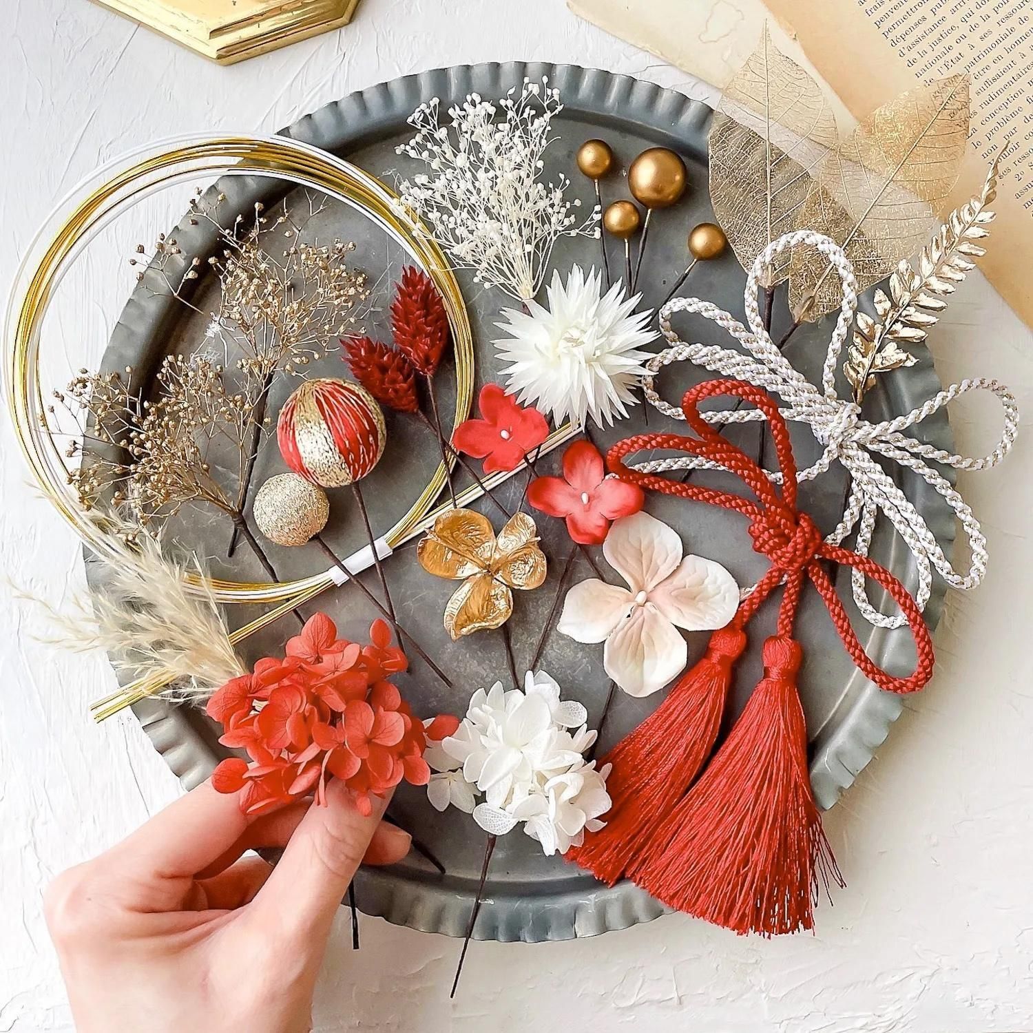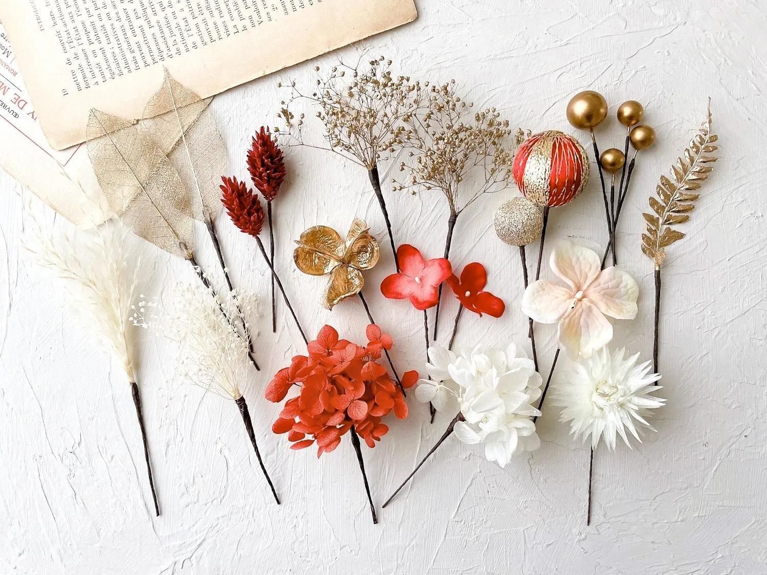 ドライ、プリザーブド、アーティフィシャルフラワーを使用しています。